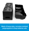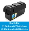 Camco's Double Battery Box safely stores automotive, RV and marine batteries. Made of heavy-duty, corrosion-resistant polypropylene, it holds (2) 6V Group GC2 batteries or (2) 12V Group 24-1/2" (L) x 7 -3/8" (W) x 11- 3/16" (H). Includes (2) straps and (4) strap clamps with screws. The Double Battery Box meets U.S. Coast Guard CFR 183.420 and ABYC E-10.7 specifications when used with (2) 6V Group GC2 batteries.