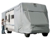 Adjustable front and rear tension panels and elasticized hem corners provide a custom fit, air vent system and quick drying PermaPRO fabric combine to reduce wind stress and vent inside moisture, long zipper pulls reduce the need for a ladder. Extra strength, lightweight PermaPRO ripstop fabric repels water and protects against dirt and sun damage, integrated strap attachment and weighted toss bag system eliminates crawling under the RV to install tension straps, tension panels reduce cover stress when tightening the straps Zippered panels allow access to the RV doors and storage compartments, panels allow access to all four sides. Zippered storage bag unzips and expands for easy packing, includes lifetime warranty