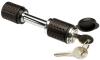 Receiver lock for 1-1/4" x 1-1/4" receivers. Use in place of standard pin and clip to prevent drawbar or accessory(bike rack/cargo carrier)theft. DeadBolt Receiver Style with flush locking design. Fits 1-1/4" x 1-1/4" trailer hitches (Class I and Class II). Pin diameter: 1/2". Inside width: 1-5/8". Overall length: 5". Double nickel chrome plate. Patented, pick proof screw-and-lock security; 5-pin tumbler; 2 keys. Made in U.S.A