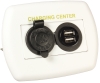 Easy installation, professional appearance. 2 USB 1 Amp @ 5V. *Refer to your device for specific requirements. 21V 10 Amp @ 12V using 18 Ga. wire or 20 Amp @ 12V using 14 Ga. wire. Spacers are available if wall space limits depth for wiring (Part No. 15171). White. Outside Dim: 5" w x 3-3/4" h x 2" d Cutout Dim: 3-1/8" w x 2-1/2" h x 1-1/2" d