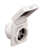 Accepts all Parkpower detachable 30amp power cord sets. 30amp 125v locking. Glass-filled polyester. Easy lock system quickly locks the cord set to the inlet in just 1/8 of a turn. 4 way right angle rear safety enclosure. stainless steel trim. convenient cover design remains open until a soft touch is applied. watertight.
