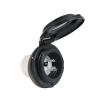 30A 125V Locking. Glass-filled polyester. Easy Lock system quickly locks the cord set to the inlet in just 1/8 of a turn. 8-way right angle rear safety enclosure. Convenient cover design remains open until a soft touch is applied.