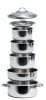Camco's Nesting Cookware is made from high quality 18/10 stainless steel with an aluminum core. It is dishwasher safe, compatible with induction cooking and can even be used in the oven when the removable handles are not attached. This attractive stainless steel is low maintenance, rust-resistant and non-reactive. Nesting cookware conveniently saves valuable space by storing in less than 1/2 cubic foot area. Includes 1 Dome Lid, 1 Stepped Lid, 1 1.5 QT sauce pan, 1 3 QT sauce pan, 1 5 QT stock pot, 2 Handles and 1 Storage Strap.