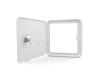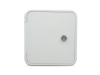 Direct OEM replacement. UV & impact resistant. Resistant to road salts & acids. Key lock. Polar white. Paintable. Cutout dim: 6-7/8" H x 6-3/8" W. Outside dim: 8-1/2" H x 8" W.
