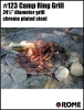 21-1/2" diameter grill, chrome plated steel. A solid cooking surface designed to fit the 24" dia. truck rims that many campgrounds use for fire rings. Also works with a wide variety of backyard firepits. Made from heavy-duty chrome wire, our camp ring provides a clean, solid surface for grilling.