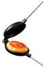 Traditional round Pie Iron crimps the edge of the bread which seals in the sweet or savory goodness (like a ravioli). Made from heavy duty cast iron with chrome plated steel rods and sturdy wood handles. 4.25" diameter cooking surface x 28" long. The original Pie Iron made by Rome since 1964.