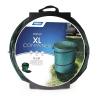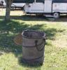 Collapsible utility containers are great for laundry, tack or trash. Can be easily moved around to accommodate a variety of needs. Each one features a durable liner, padded handles and a stake to secure it in place. The standard container has a lid that zips closed. It stands 2 feet tall and provides a sturdy frame for 33 gallon bags. Collapses in seconds to store at just 2" high in its zippered storage bag. The XL container is made of heavy canvas and has a bottom handle for easy lifting. Features toggles to hold top securely closed. Stores 2.5" high. Holds 39 gallon yard bags. 22" X 28."