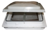 For a 14" square rough opening. Exclusive self-centering device eliminates installation guess work, assures perfect alignment in roof opening. Attractive radius corners are standard. Screen allows air through, keeps insects out. Positive-seal weather stripping is leak resistant and weather tight. Acrylic UV resistant translucent lid conforms to Federal Motor Vehicle Safety Standard (FMVSS) No. 205 glazing materials. Hand crank opens and closes lid securely. Pin hinge style. For replacement lid use KMS# 4100292.