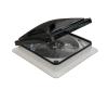 This model is activated when the three speed switch is turned to any of the three speed selections. The dome cover is opened when the dome up switch is activated and closed when the down feature of the switch is selected. To activate the fan blade the built-in thermostat must be turned to a temperature selection which is lower (cooler) than the current temperature. Once the selected temperature is attained the fan blade will shut off, but the dome will remain open until the down feature is selected or the built-in rain sensor becomes wet. Once the sensor dries the dome will re-open. A built-in manual knob can be used to close the dome in an emergency, adjust the dome to a desired partially open level or to override the rain sensor when it has closed the dome and is not yet dry. For storage the dome switch must be in the down position and the three speed switch in the off ("O") position.