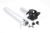 Full adjustable ball and socket rotates and pivots for use on any rod mount design.