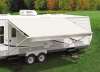 Now there's no need to wait for a made to order patio awning replacement fabric. Simply cut the fabric to fit your customer's patio awning right on the spot. Carefree Cut To Fit patio awning fabrics are made of 13.5 ounce vinyl fabric specially designed for cutting without fraying and feature pre installed polycord (1/4" at the awning rail and 3/16" at the roller tube) for quick and easy installation. Welded hem strengthens fabric at the awning rail and at the roller tube. All fabric rolls include the valance as well for a complete on the spot fabric replacement! Standard projection fits all brands.