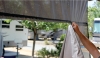 Don't put up with the heat and glare of early morning or late afternoon sun. The EZ ZipBlockers weather resistant open-weave fabric cuts almost 85% of light to keep you cool and comfortable - but it doesn't block your view! Fabric construction is a woven 100% polyester with a durable vinyl coating. It slips quickly and easily into the open slot on most awning roller tubes and the top portion can stay in the tube for storage. The insert slides into the awning roller and rolls up with the awning (insert must be removed on awning's with springs). This allows you to reach the zipper without a ladder. When you set up again, simply zip the body panel into the insert. Grommets and ground stakes included. All Black. 19' wide. 7' drop has a 6' body panel and a 1' insert.