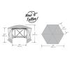 Super Bear Den Deluxe Gazebo is now updated with a 6 foot door opening, height increase of 6' 6"! Reinforced steel door frame with reinforced base corner stitching. 230T Polyester (450mm/UV50+), mesh walls. Fully taped seams on roof. Large roll up wall entrance. Privacy Panel walls available, not included. Pegs, guylines and carry bag included. Carry bag is not covered under warranty. Carry bag measures 5' 6" L. 86 square foot footprint. 11' 6" (L) x 9'10" (W) x 8' (H). Weighs 28 pounds. Grey/Orange.