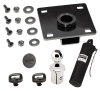 Easy under bed bolt in installation. Fifth wheel ready uses outer four holes to mount a fifth wheel hitch. Pop In Ball. Lever inside ball head activates ball bearing locking system. Lift and turn lever to unlock and remove ball. Hole cover keeps Pop In Ball sleeve free of debris. Two safety chain holders attach directly to rail system. Rated for 25,000 lbs. gross weight capacity. Storage bag included.