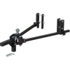 Integrated sway control actively resists sway and levels the vehicle and trailer. Four points of sway control work together to keep trailer aligned. Welded head with cast pieces and trunnion-style forged steel spring bars. Uses spring & cam system with hardened components, instead of friction alone. Adjustable brackets provide fixed support unlike spring bar chain models. Brackets use friction to resist lateral movement, replacing a sway control.
