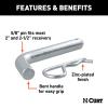 This particular 5/8" hitch pin features a zinc finish and comes with a standard retainer hole to accept the included clip. CURT 5/8" hitch pins and clips are ready to work. They provide reliable installation for any ball mount or hitch-mounted accessory with a 2" or 2-1/2" shank, making them the perfect fit for class 3, 4 and 5 trailer hitches. (Packaged)