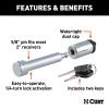 CURT hitch locks allow you to lock your ball mount into your trailer hitch, deterring theft and preventing anyone from detaching your trailer at the ball mount and towing away your property without your permission. This CURT hitch lock features a barbell design and comes with a 5/8" pin diameter to fit a 2" receiver tube size. CURT barbell hitch locks are comprised of a pin with two end caps and a round locking mechanism. They are key-operated and activate with a simple 1/4-turn. They also come with a watertight dust cap to keep out the elements and prevent corrosion.