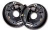 Hydraulic 10” drum brake backing plates for 5 lug wheels. E- coated for corrosion resistance. Aluminum wheel cylinder. Stainless steel springs. Brake pads are bonded and riveted. Assembled backing plates only, does not include drum hubs.